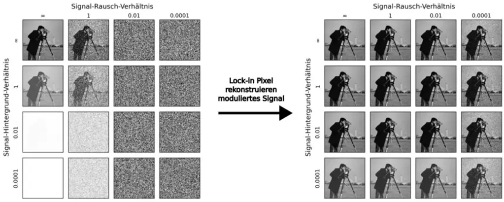 画像1:ピクセルレベルでロックイン技術を備えたカメラは、一定のバックグラウンドや1/fノイズなどの特定のノイズ源をほぼ完全に抑制できます。